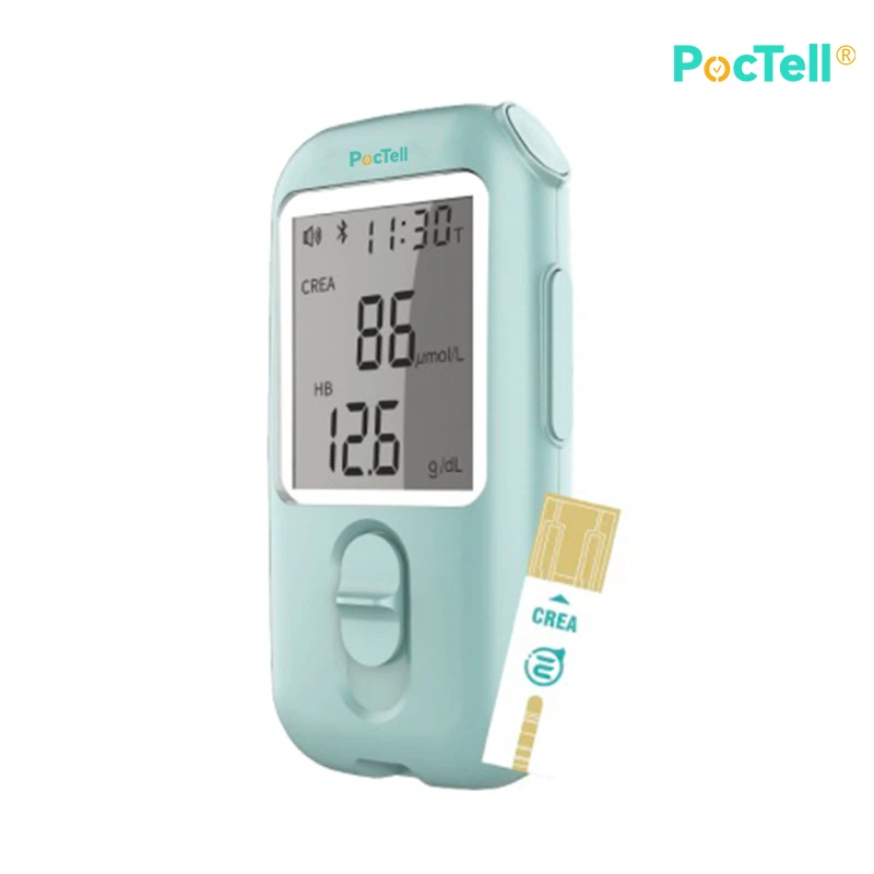 The PocTell® Blood Creatinine Meter meter is used in conjunction with blood glucose test strips, uric acid test strips and creatinine test strips for the in vitro quantitative detection of glucose, uric acid and creatinine concentrations in fresh capillary blood and venous whole blood. It can be used in hospitals to monitor blood glucose in diabetic patient, creatinine in patients with kidney disease and uric acid in patients with hyperuricemia.